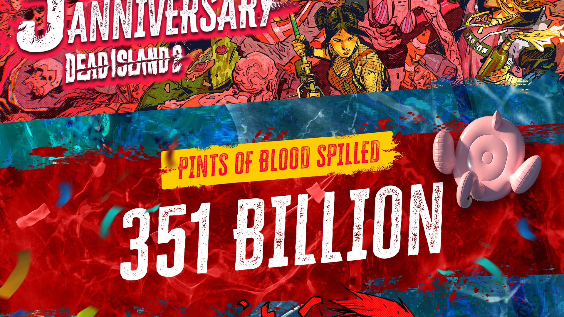 In den blutgetränkten Straßen von HELL-A hat Dead Island 2 Fans auf der ganzen Welt ein deftiges, knochenbrechendes Zombie-Gemetzel beschert. Die Jubiläumsfeierlichkeiten sind ein Dankeschön an die leidenschaftliche Community, die die Insel seit dem Start am Leben erhalten hat … und eine Erinnerung daran, dass die Zompokalypse noch lange nicht vorbei ist, denn die Untoten sind noch ganz schön aktiv.